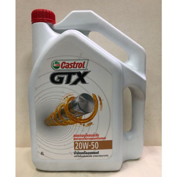 น้ำมันเครื่อง คาสตรอล จีทีเอ็กซ์ (SAE 20W-50) เป็นน้ำมันเครื่องที่พัฒนาขึ้นจากน้ำมันแร่พื้นฐานคุณภาพสูง และสารเพิ่มคุณภาพ Wear Guard Performance Booster ซึ่งเป็นเทคโนโลยีล่าสุดของคาสตรอล ที่ช่วยลดการสึกหรอของเครื่องยนต์ในทุกช่วงอุณหภูมิการใช้งาน และรักษาความหนืดของน้ำมันได้ตลอดอายุการใช้งาน ด้วยระดับคุณภาพที่สูงกว่ามาตรฐาน SM นี้ทำให้ GTX ให้การปกป้องเครื่องยนต์ตลอดเวลา