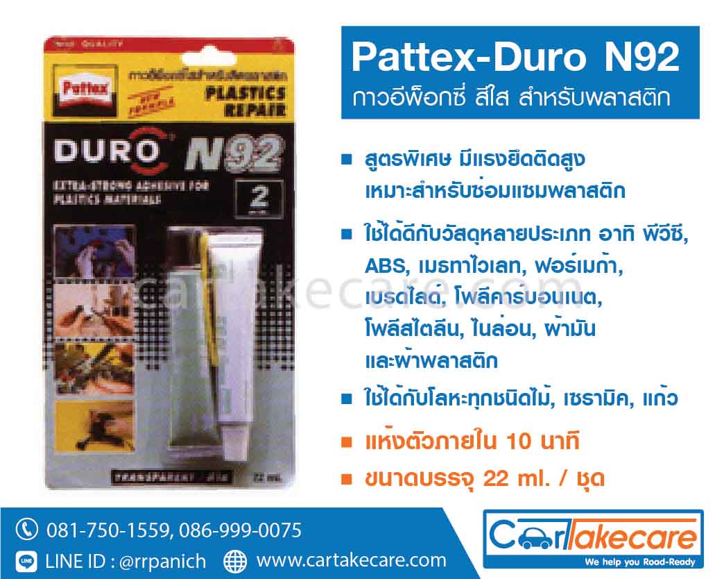 Pattex DURO N92 – กาวอีพ็อกซี่ สีใส (งานซ่อมพลาสติก) แพทเท็คส์-ดูโร่ ขนาด 22 ml.