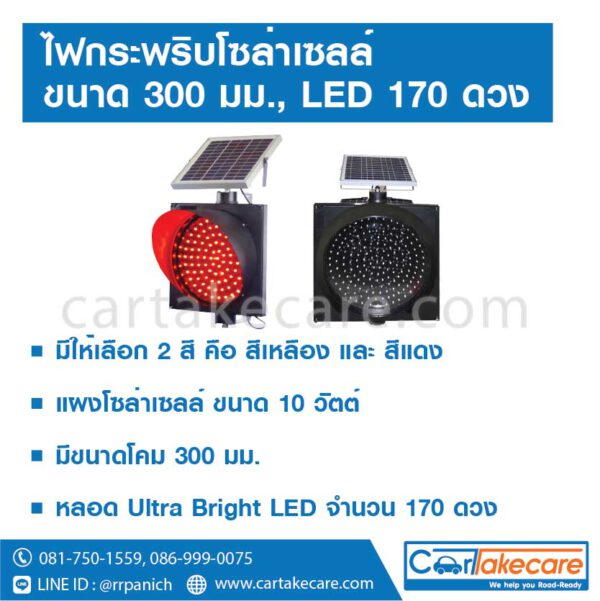 - ขนาดโคมไฟกระพริบ 300 มม. และ ใช้หลอด Ultra Bright LED จำนวน 170 ดวง